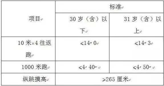 報考警務(wù)輔助人員職位的人員,研究生及以上學(xué)歷人員體能測評三項中有兩項達標的,視為合格。非研究生及以上學(xué)歷報考人員體能測試三項全部達標方為合格。