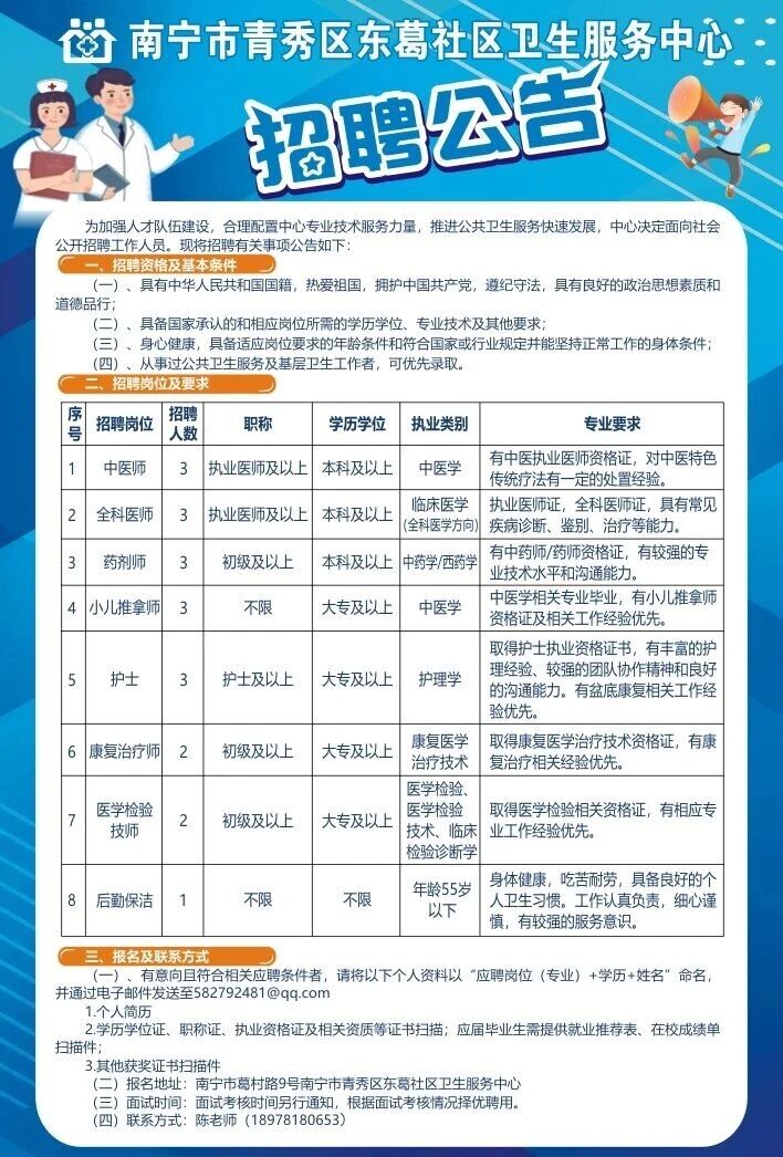 原文標題:南寧市青秀區東葛社區衛生服務(wù)中心招聘公告