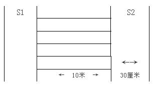 場(chǎng)地器材:10米長(cháng)的直線(xiàn)跑道若干,在跑道的兩端線(xiàn)(S1和S2)外30厘米處各劃一條線(xiàn)(圖1)。木塊(5厘米×10厘米)每道3塊,其中2塊放在S2線(xiàn)外的橫線(xiàn)上,一塊放在S1線(xiàn)外的橫線(xiàn)上。秒表若干塊,使用前應進(jìn)行校正。