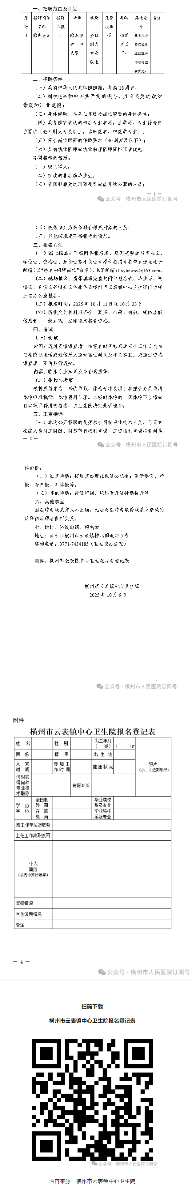 2025年橫州市云表鎮中心衛生院公開(kāi)招聘編外衛生專(zhuān)業(yè)技術(shù)人員的公告