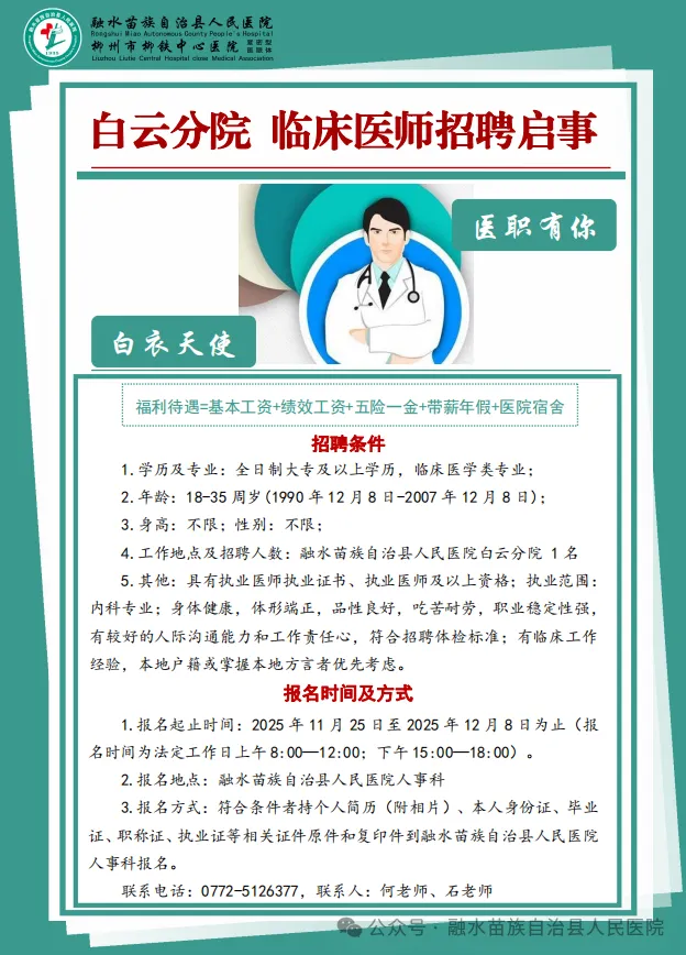 2025年融水苗族自治縣人民醫院緊密型醫共體白云中心衛生院、永樂(lè )鎮衛生院招聘