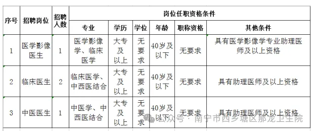 原文標題:2025年南寧市西鄉塘區那龍衛生院公開(kāi)招聘編外工作人員公告