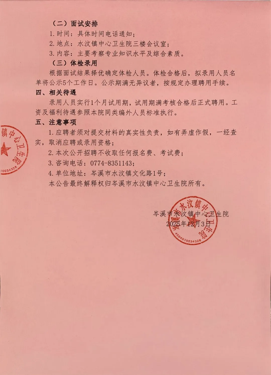 2025年梧州岑溪市水汶鎮(zhèn)中心衛(wèi)生院招聘護士和康復(fù)技師