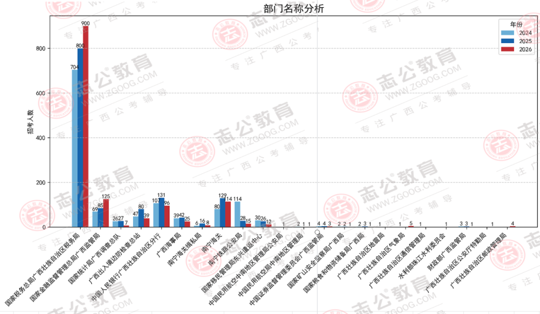 在今年,廣西國稅系統這個(gè)招考“大戶(hù)”,招錄漲到了900人,職位數占比66%。此外,國家金融監督管理總局廣西監管局招125人,呈正增長(cháng),與2025年國考相比漲幅47%。南寧海關(guān)從2025年招錄129人,2026年只招錄114人,相比縮減了11.63人。
