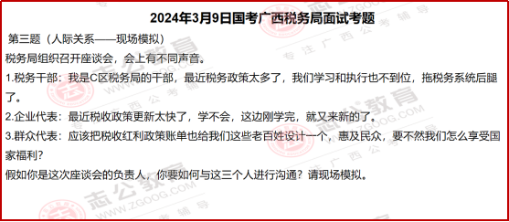 國考面試里,稅務(wù)系統的題目一直有個(gè)很明顯的特點(diǎn),就是緊跟國家政策、貼近實(shí)際工作。尤其是2024年廣西稅務(wù)局的面試題,把這個(gè)特點(diǎn)體現得特別透徹??催@些題目,既能知道稅務(wù)工作實(shí)際需要什么樣的人、做什么樣的事,也能清楚面試到底要考察我們哪些核心能力。今天小志就帶大家了解一下,國考中稅務(wù)系統面試一些相關(guān)信息解讀: