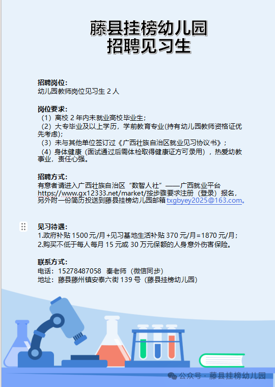 2026年藤縣掛榜幼兒園春學(xué)期招聘見(jiàn)習老師公告