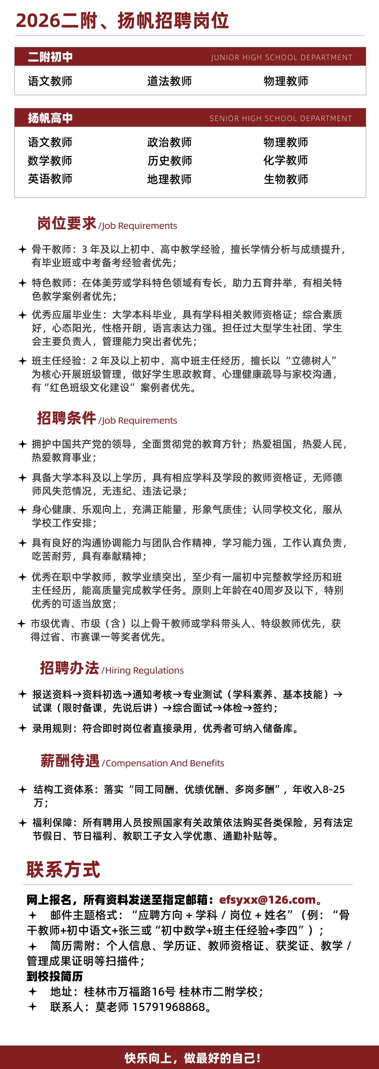 2026年桂林市二附學校、桂林市揚帆高級中學誠聘初、高中教師